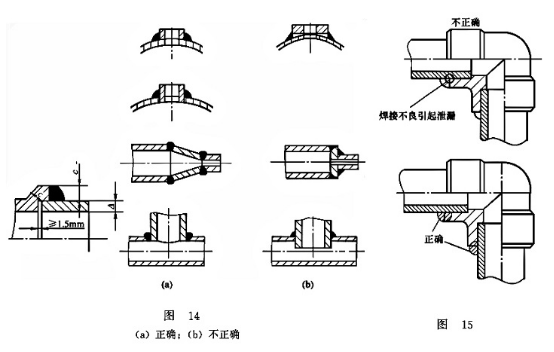 管接頭、鋼管及銅管等硬性管需要焊接連接時(shí),如果焊接不良,焊接處出現(xiàn)氣孔、裂紋和夾渣等焊接缺陷,會(huì)引起焊接處漏油;另外,雖然焊接較好,但焊接處的形狀處理不當(dāng),用一段時(shí)間后也會(huì)產(chǎn)生焊接處的松脫,造成漏油,如圖14和圖15所示。