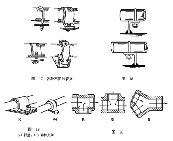 (4)采用管夾和彈性支架等防止振動(dòng),如圖17~圖19所示。