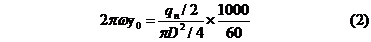 這是閥的額定流量qn、缸徑D和初始振幅y0的關(guān)系式。設(shè)計計算時將已知閥的額定流量qn、初步選定的缸徑D代入式(3),便可求出活塞初始頻率點(diǎn)的初始振幅y0?;钊南尬恍谐蘈應(yīng)滿足L≥y0,推薦取L=y0。
