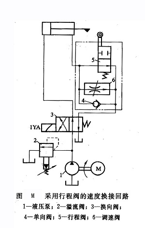 機床在自動循環(huán)的過程中,工作部件往往需要有不同的運動速度,經(jīng)常進行不同速度的變換,如快速趨近工件變換到慢進工作速度,從一種工作進給速度變換到另一種工作進給速度等。這就需要采用速度換接回路。