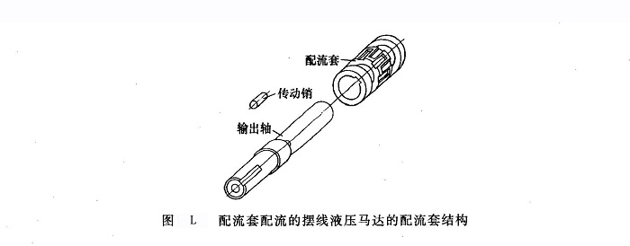 圖L所示為配流套配流的擺線液壓馬達(dá)的配流套結(jié)構(gòu),輸出軸通過傳動(dòng)銷帶動(dòng)配流套旋轉(zhuǎn)。配流套在輸出軸上浮動(dòng),不受徑向力的影響,從而能保證配流套與殼體配合面的同心,故可延長使用壽命。但傳動(dòng)鏈的加長會(huì)使配流精度有所下降。