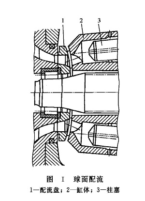 b.球面配流如圖I所示,由于配流盤1與缸體2的結(jié)合部為球面,故稱球面配流。此結(jié)構(gòu)具有很好的自位性,能自動補償。但球面加工需要專用設(shè)備,精度要求高,維修不便。