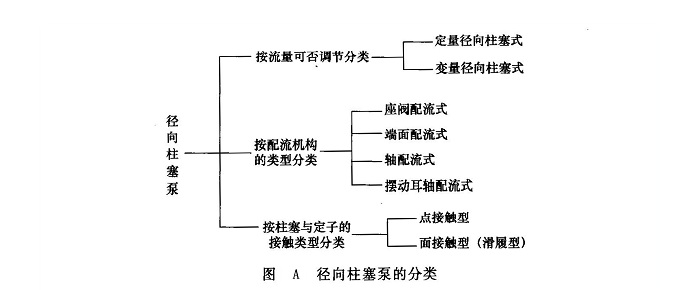 (1)分類 徑向柱塞泵的品種不像軸向柱塞泵那樣豐富。圖A所示為徑向柱塞泵的詳細(xì)分類。徑向柱塞泵多采用座閥配流和軸配流。