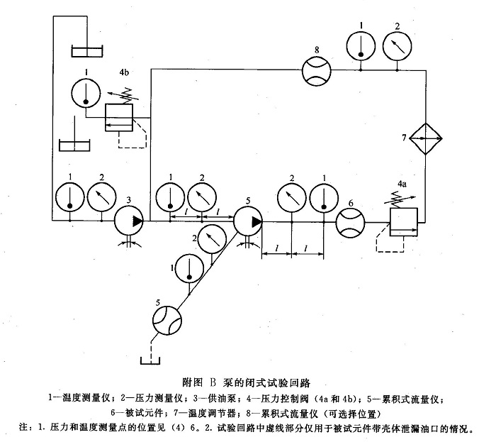 c. 如果測試的是雙向泵,應(yīng)對附圖A和附圖B所示的試驗回路作適當修改,因為附圖A和附圖B所示的試驗回路僅適用于單向泵的試驗。
