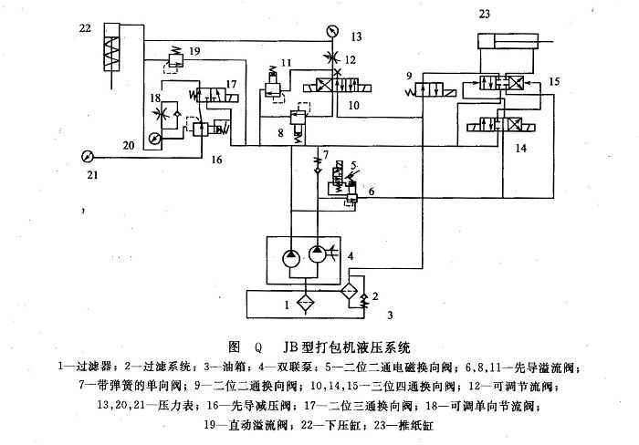 JB型打包機(jī)液壓系統(tǒng)如圖Q所示。