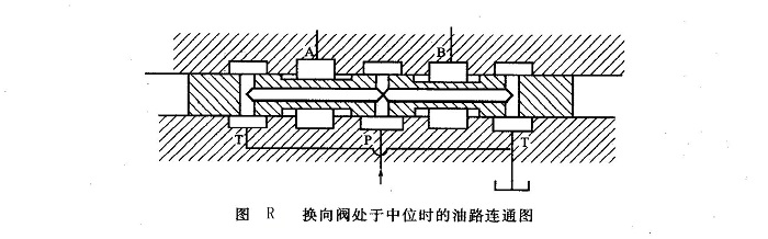 該閥是一個(gè)具有M型滑閥機(jī)能的三位四通電磁換向閥,中位時(shí)油路的連通狀況如圖R所示。